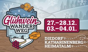 Zwischen den Feiertagen laden wir euch ein, die neue Strecke zu entdecken: Von Diedorf geht es über Katharinenberg bis zur urigen und gemütlichen Heimatalm. Entlang des Weges erwarten euch mehrere Glühweinhütten, an denen ihr euch mit rotem oder weißem Glühwein, Kinderpunsch, Bier oder alkoholfreien Getränken stärken könnt.